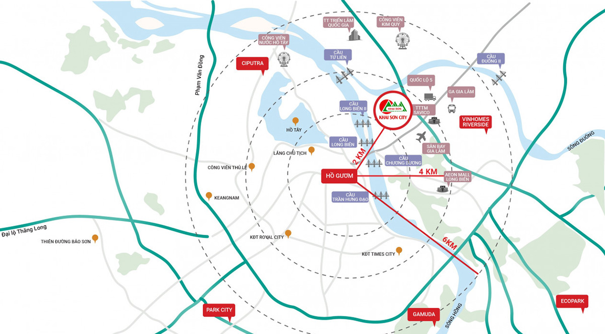 Khai Son City Residence is located in Long Bien District, right at the gateway connecting Long Bien and Dong Anh Area, North-East of Hanoi. This location offers a balance between urban convenience and quieter suburban living.