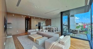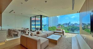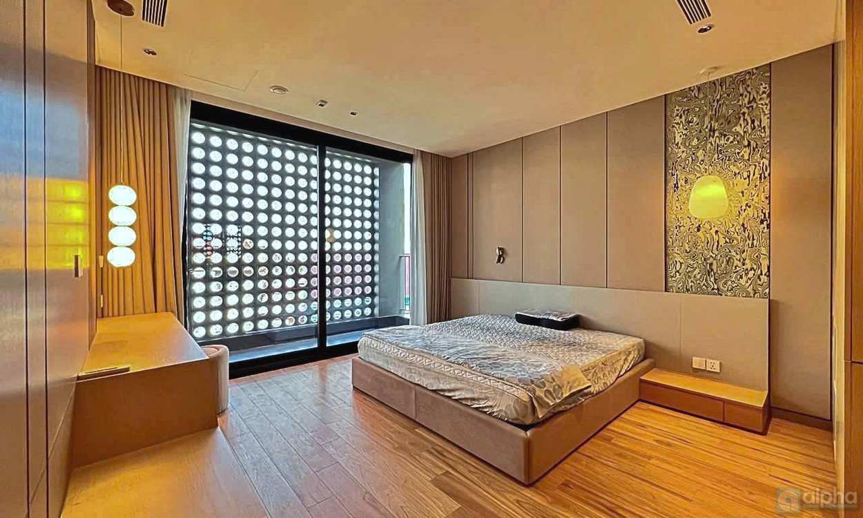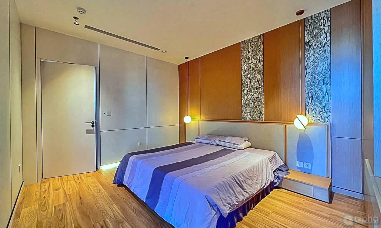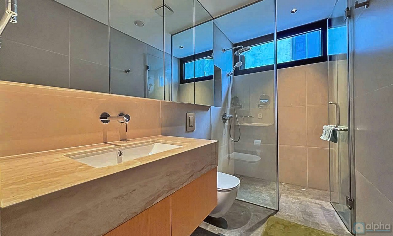 Modern 02-bedroom apartment for rent in Xuan Dieu, Tay Ho, Ha Noi with direct car access. Total living area is 127 m2 with modern design, 02 bedrooms and big wardrobes, a spacious living room with opening window and balcony view overlooking Westlake, a modern open kitchen and dining area.
