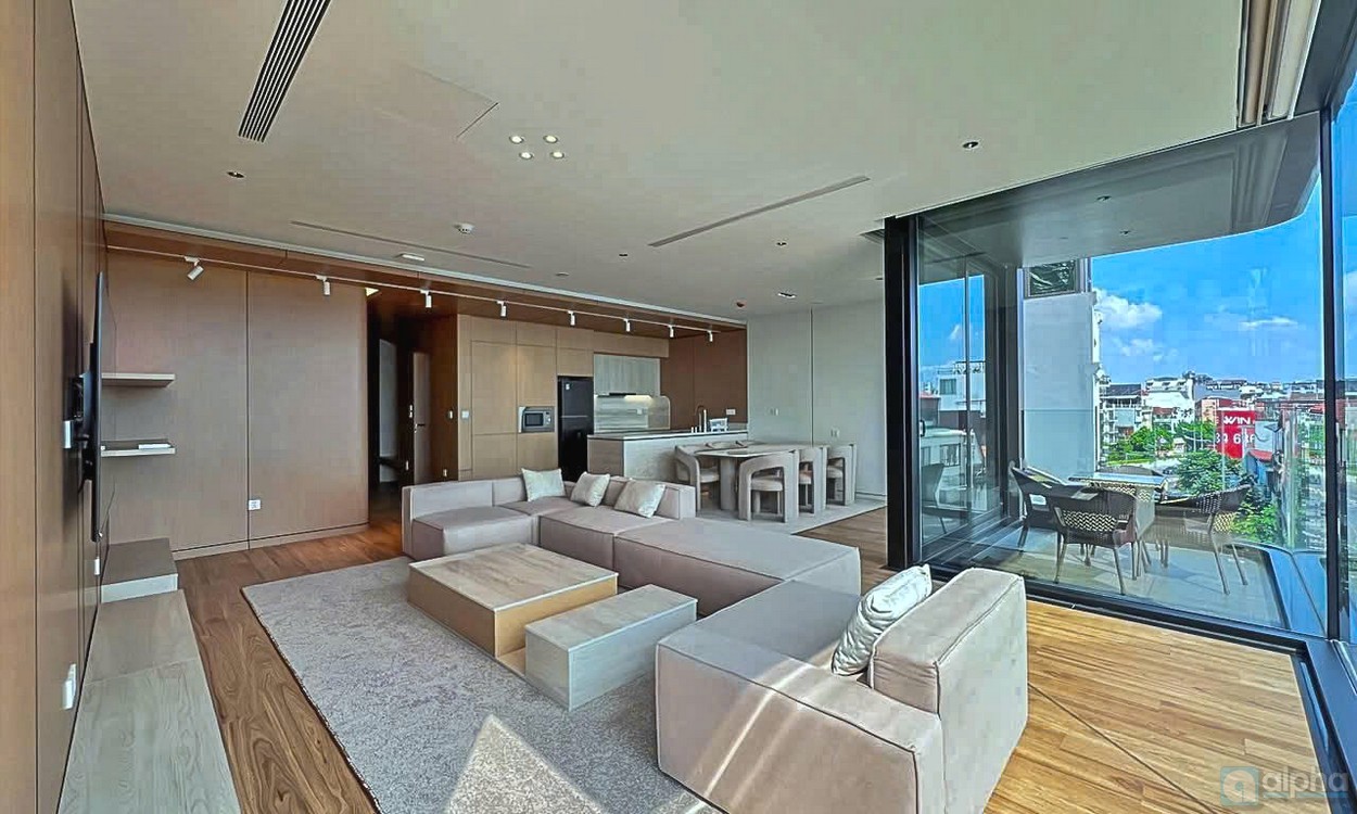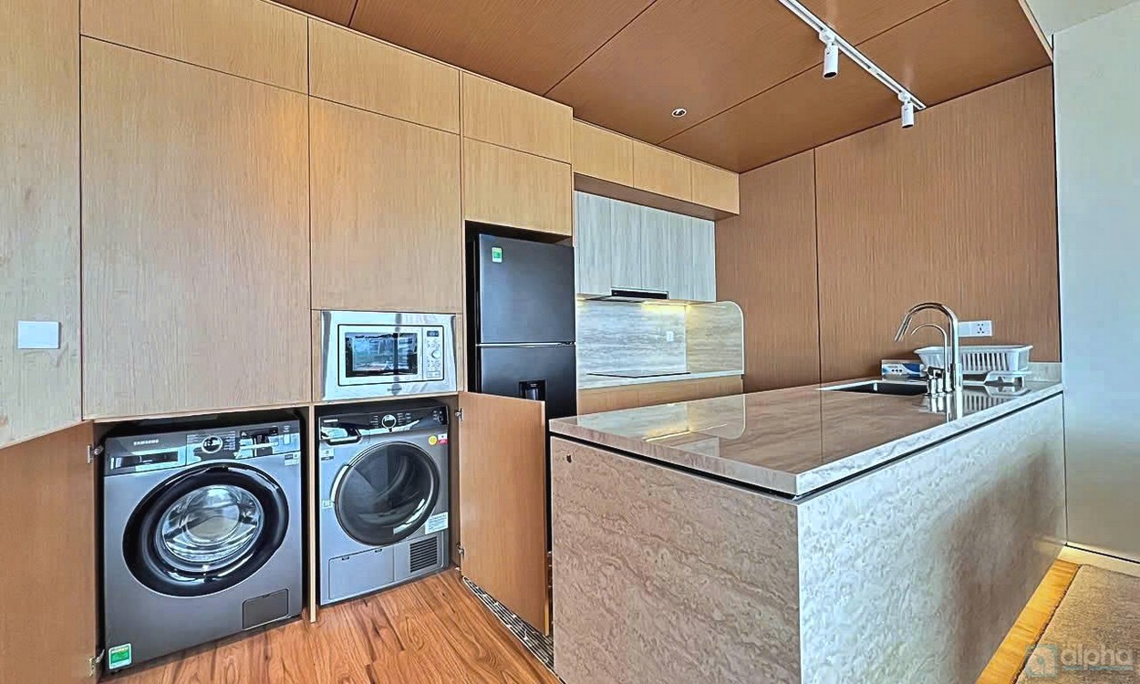 The apartment is fully furnished with modern style and high quality, fully equipped in the kitchen including fridge, oven, dishwasher, microwave, washing machine, dryer.