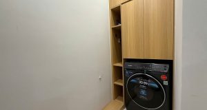 Căn hộ 88m2 được tối ưu hóa với nhiều không gian như phòng khách có ban công kiểu Juliette (không nhô ra khỏi tòa nhà), hai phòng ngủ và 2 nhà vệ sinh, khu vực bếp và phòng máy giặt riêng biệt.