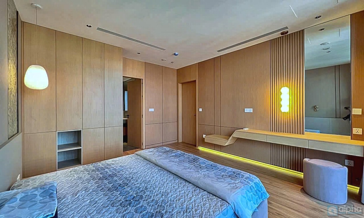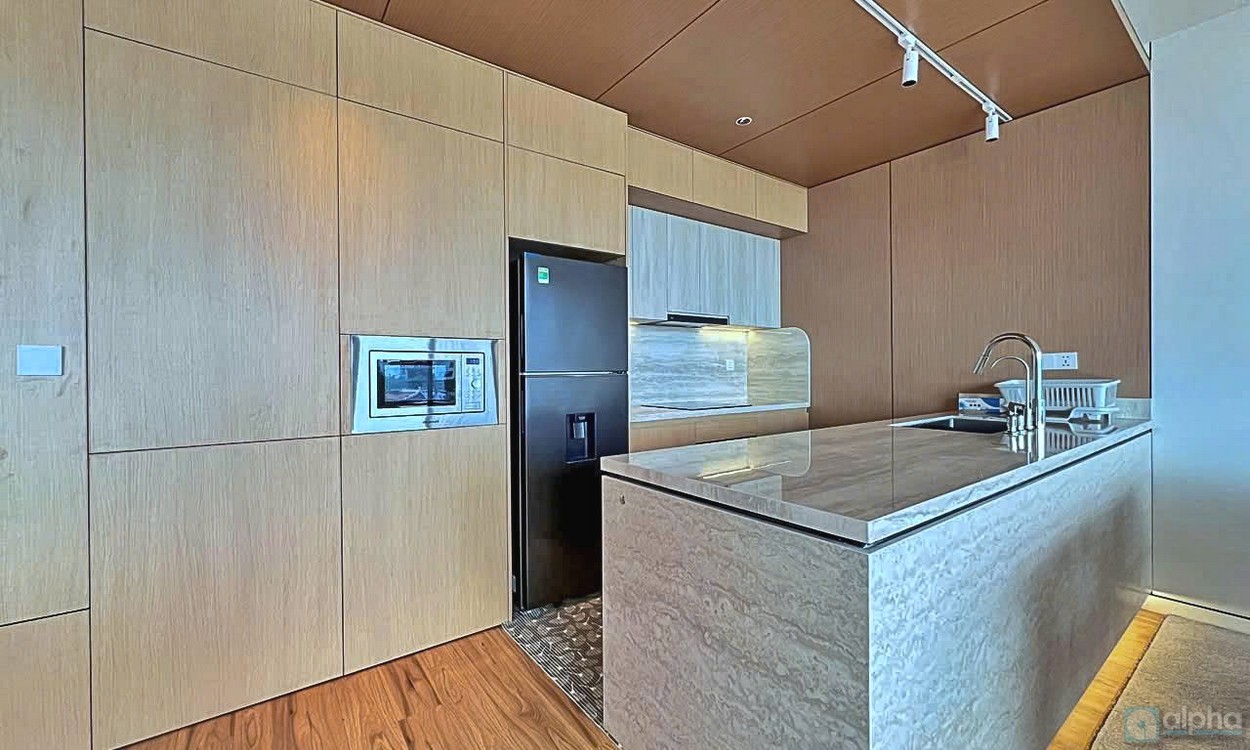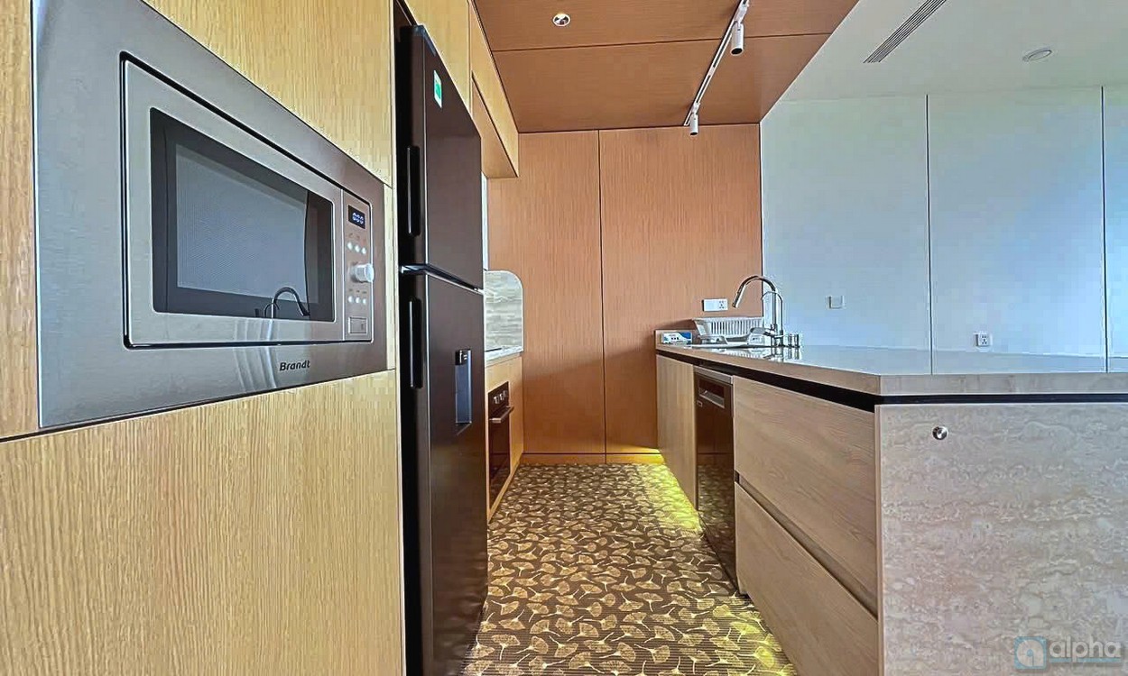 Căn hộ được trang bị đầy đủ nội thất theo phong cách hiện đại và chất lượng cao, nhà bếp được trang bị đầy đủ tiện nghi bao gồm tủ lạnh, lò nướng, máy rửa chén, lò vi sóng, máy giặt, máy sấy.